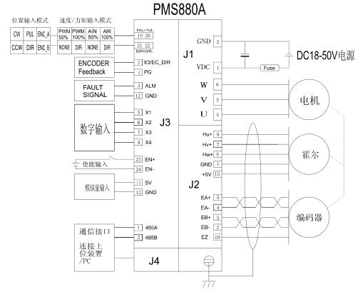PMS880A是東么川公司研發生產的一款以高性能DSP為運算核心,基于直接轉矩控制算法,多功能,帶增量/絕對編碼器的伺服驅動器。全數字式設計使其擁有靈活多樣的輸入控制方式,極高的調速比,低噪聲,高帶寬,完善的軟硬件保護功能,驅動器可通過串口通信接口與計算機相連,實現PID參數調整,